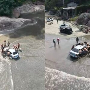 No sábado (04/04), um carro ficou atolado na faixa de areia da Praia do Perequê, em Guarujá, no litoral de São Paulo, e contou com a ajuda de banhistas para ser retirado do local. A situação ocorreu em área onde o acesso de veículos é restrito. As informações são do g1 Santos.Imagens mostram várias pessoas ao redor do automóvel tentando auxiliar na retirada enquanto o mar avançava e atingia o veículo. Em um dos momentos, uma pessoa utilizou um pedaço de madeira para tentar liberar uma das rodas presas na areia.Não há confirmação sobre o motivo que levou o motorista a entrar na faixa de areia. Após a mobilização dos presentes, o carro conseguiu sair do local.A Prefeitura de Guarujá informou que o acesso à areia naquela região é permitido apenas para moradores. Conforme o Código de Posturas do município, veículos que circulam ou estacionam nesse tipo de área estão sujeitos a multa no valor de R$ 1.157.Veja:#SãoPaulo – Um carro atolou na areia da Praia do Perequê, no Guarujá, litoral paulista, neste sábado (4). Em imagens obtidas pelo g1, é possível ver várias pessoas ao redor do veículo, tentando auxiliar na retirada, enquanto as ondas o atingem. Em determinado momento, uma das pessoas utiliza um pedaço de madeira para tentar desatolar uma das rodas. Não há informações se o motorista, que não foi identificado, tentava acessar alguma residência ou se o carro estava estacionado no local. O carro conseguiu deixar o local. Leia mais no #g1 #g1local #flagrante #tiktoknoticias