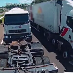 Depois da colisão, o guincho colidiu com a mureta da BR-480 em Chapecó, enquanto o caminhão guinchado tombava na pista. O veículo responsável pelo acidente não parou no local.Um caminhão que estava sendo transportado por um guincho tombou na BR-480, no acesso a Chapecó, no Oeste catarinense, após ser atingido por outro caminhão que seguia pela pista e deixou o local sem prestar atendimento. Com o impacto, o guincho não tombou, mas acabou batendo contra a mureta da rodovia, provocando a interdição da via na tarde desta quarta-feira (04/02).Segundo informações apuradas no local, o guincho trafegava pela BR-480 transportando um caminhão, quando um terceiro veículo passou ao lado e acabou atingindo a traseira do caminhão que estava sendo guinchado.A batida fez com que o caminhão guinchado tombasse sobre a pista, enquanto o guincho perdeu a estabilidade e colidiu contra a mureta de proteção da rodovia.A post shared by ND Mais (@ndmais)