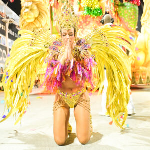 A atriz, que está atualmente na novela Três Graças, da TV Globo, entregou tudo no samba