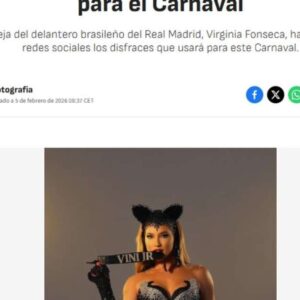 O ensaio de Carnaval protagonizado por Virginia Fonseca para o gshow ultrapassou as fronteiras do Brasil e passou a chamar atenção também fora do país. A influenciadora recriou um figurino clássico usado por Luma de Oliveira no desfile de 1998 e acrescentou um detalhe que chamou ainda mais atenção: uma coleira com o nome de Vini Jr., seu namorado. A produção repercutiu em veículos internacionais, que classificaram as imagens como “deslumbrante” e “surpreendente”.O destaque internacional não aconteceu por acaso. Desde que assumiu o relacionamento com o jogador do Real Madrid e da Seleção Brasileira, o nome de Virginia Fonseca passou a aparecer com frequência em portais estrangeiros. O jornal espanhol Diário AS comentou que a namorada de Vinicius Junior vem provocando alvoroço nas redes sociais com seus looks de Carnaval. A publicação explicou a inspiração no figurino de Luma de Oliveira e ressaltou trechos da influenciadora sobre a escolha da coleira em homenagem ao atleta.Outros veículos também deram destaque ao ensaio. O jornal esportivo espanhol Marca estampou a manchete: “Vini está afogando as mágoas do Real Madrid em sua namorada, que usa um colar com seu nome”. A publicação se referiu ao momento complicado vivido pelo jogador no clube e chamou atenção para o acessório usado por Virginia Fonseca, além das poses ousadas do ensaio. Já o Daily Star, do Reino Unido, utilizou o termo “WAG” para se referir à influenciadora e descreveu as fotos como “deslumbrante” e “ousado”.O site espanhol Mix Vale também destacou a produção, afirmando que Virginia Fonseca “surpreendeu” com a coleira personalizada. A publicação relembrou a fantasia de Luma de Oliveira e a polêmica que ela gerou décadas atrás. Além disso, o portal citou a preparação da influenciadora para o Carnaval como rainha de bateria da Grande Rio, lembrando o impacto causado quando ela foi convidada para o posto, já que vinha do universo digital e não tinha histórico no mundo do samba.
