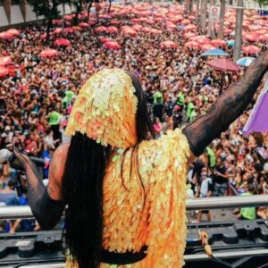 Grag Queen se apresentou hoje (7) no Bloco da Favorita, direto do Centro do Rio de Janeiro para os foliões cariocas. Durante a apresentação, a artista cantou as músicas “Mau Contato”, “Tô Mal” e “Canceriana”, levando a energia da Era Cósmica ao público. O show contou ainda com a participação do DJ Felipe Poeta.