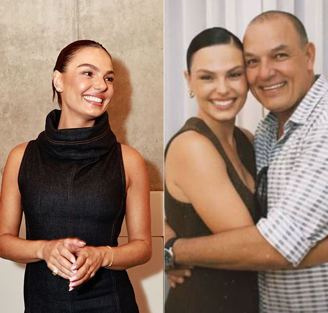Em seu Instagram Stories, a atriz compartilhou a montagem em que ela e o pai surgem abraçados e sorridentes.