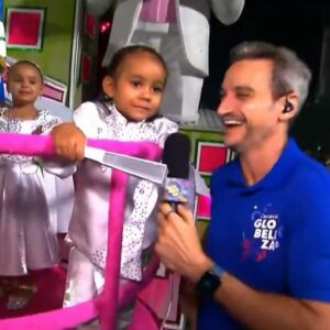 Mini mestre-sala diverte repórter da Globo com sinceridade sobre irmã no carnaval: ‘Irritante’