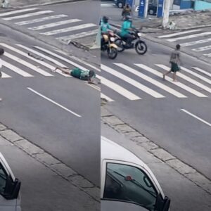 Uma mulher de 67 anos foi atropelada por um motociclista que empinava a moto na tarde de quarta feira (4) no bairro Americanópolis, na Zona Sul de São Paulo, na Avenida Yervant Kissajikian, por volta das 17h, e o condutor deixou o local sem prestar auxílio. As informações são do g1 SP e TV GloboImagens de câmeras de segurança indicam que a vítima atravessava pela faixa de pedestres quando foi atingida. Outro motociclista havia parado antes da travessia para permitir a passagem, e na sequência o segundo condutor surgiu executando a manobra e atingiu a pedestre.A Polícia Civil busca identificar e localizar o responsável. O resgate foi feito pelo Serviço de Atendimento Móvel de Urgência, que encaminhou a vítima ao Hospital Pedreira, segundo a Secretaria Municipal da Saúde.O caso segue sob apuração pelas autoridades. Veja o vídeo:São Paulo – Um motociclista que estava empinando a moto atropelou uma mulher de 67 anos na tarde de quarta-feira (4) no bairro Americanópolis, na Zona Sul de São Paulo. O homem fugiu do local sem prestar socorro e é procurado pela Polícia Civil. O atropelamento aconteceu por volta das 17h, na Avenida Yervant Kissajikian, altura do número 2.423. Segundo as imagens do local, a vítima atravessava na faixa de pedestres quando foi atingida. As imagens de uma câmera de segurança mostram a mulher cruzando a avenida correndo, quando o motociclista se aproxima empinando a moto e a atinge. As gravações também mostram que outro motociclista havia parado antes da faixa para permitir a travessia dela. Na sequência, o segundo condutor aparece empinando a moto. A vítima foi socorrida pelo Serviço de Atendimento Móvel de Urgência (Samu). A Secretaria Municipal da Saúde (SMS) informou que ela foi encaminhada ao Hospital Pedreira, na Zona Sul. O caso é investigado, e a polícia tenta identificar e localizar o motociclista responsável. Veja mais em g1. #SãoPaulo #bomdiasp #g1local #tiktoknotícias
