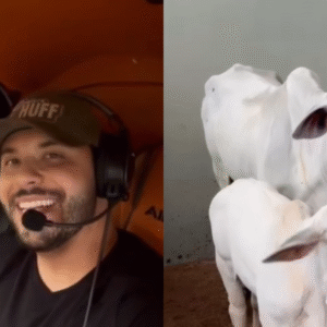Murilo Huff presenteia Gabriela Versiani com bezerra da linhagem de vaca de R$ 54 milhões