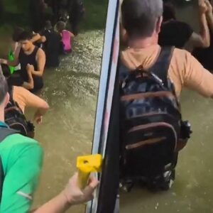 Passageiros descem de ônibus em meio a alagamento com água na cintura; VEJA VÍDEO