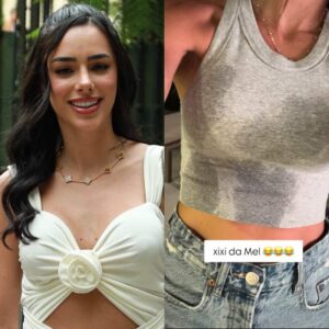 Perrengue de mãe! Bruna Biancardi mostra blusa molhada e ri: Xixi da Mel