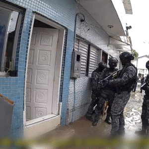 Um homem de 27 anos foi detido depois que equipes do Grupo de Ações Táticas Especiais entraram em uma residência para libertar uma mulher de 26 anos mantida sob ameaça na quinta feira (05/02), na comunidade Vila Júlia, em Guarujá, no litoral de São Paulo. A filha do casal, de oito anos, também esteve sob ameaça e foi liberada durante as tratativas. As informações são do g1 Santos.A ação teve início por volta das 11h em um imóvel na Rua da Serra, após indicação de que as vítimas eram mantidas em cárcere privado com uso de arma. Autoridades informaram não saber o tipo exato do armamento, apenas que não se tratava de revólver. Por volta das 14h, depois da saída da criança sob mediação da Polícia Militar, equipes especializadas entraram no local e efetuaram disparos com munição de borracha.As imagens mostram o momento da entrada tática. O suspeito foi encontrado no chão da sala e policiais anunciaram: “Acabou!”. Em outro trecho, a mulher corre em direção à lavanderia e tenta sair por uma janela, sendo acolhida por um agente que afirma: “Calma, está comigo”. Também é possível ouvir tiros e latidos durante a movimentação. O material foi captado por dois ângulos, incluindo câmera corporal de integrante da equipe, e divulgado com o rosto do detido desfocado.Conforme o comando do 21º Batalhão de Polícia Militar do Interior, foram adotadas medidas de gerenciamento de crise com isolamento do imóvel, contenção do agressor e levantamento de informações. As negociações iniciais resultaram na saída da criança e, por volta das 13h, o GATE assumiu a condução da situação.A corporação informou que a mulher não sofreu ferimentos e recebeu atendimento do Corpo de Bombeiros antes de ser encaminhada à Unidade de Pronto Atendimento da Enseada. O suspeito foi levado pelo Samu à UPA Rodoviária sem gravidade.Veja o vídeo:
