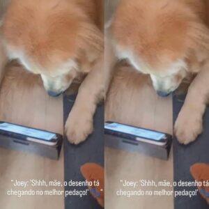 Quem aguenta? Se você acha que somente os humanos adoram seriados, está muito enganado! Um cachorrinho viralizou nas redes sociais ao aparecer completamente concentrado assistindo a um desenho animado. A tutora do golden retriever flagrou o animalzinho no quarto escuro deitado no chão enquanto olhava atentamente para o tablet acompanhando as cenas de seus personagens favoritos, igual uma criança faz. Em certo momento, a humana tenta falar com o pequeno Joey, mas, ao ver a cara que o pet faz ao olhá-la, ela entende o recado e diz ao cachorrinho que vai deixá-lo descansar em paz, enquanto ele curte o desenho animado Bluey, que traz a história de uma família de cachorros.Confira: Se você acha que somente os humanos adoram seriados? Que nada! Um cachorrinho viralizou nas redes sociais ao aparecer completamente concentrado assistindo um desenho animado pic.twitter.com/j8tEZnu80b