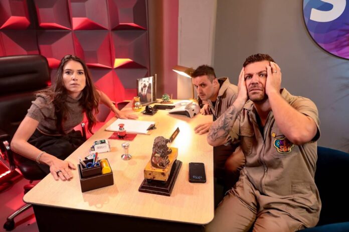O papo é que Victor Sarro e Rodrigo Capella foram convocados pra dar explicações — sabe aquele tipo de cena clássica de programa de humor? — e quando eles aparecem, BAM! Lá vem a Rebeca com uma performance que deixou todo mundo rindo. Essa mulher tem graça e talento pra comédia que a gente nem desconfiava!