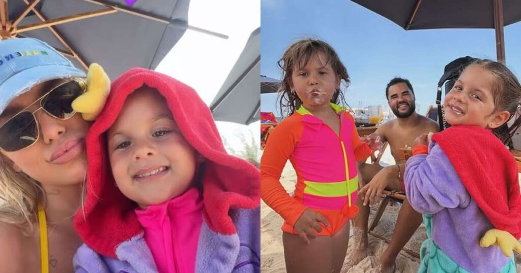 Após a maratona do Carnaval 2026, Virginia Fonseca aproveitou a tarde desta quinta-feira (19) para relaxar. A influenciadora, que estreou como rainha de bateria da Grande Rio, escolheu a praia para recarregar as energias ao lado das filhas, Maria Alice, de 4 anos, e Maria Flor, 3, e do amigo Lucas Guedez. Vale lembrar que a escola de Duque de Caxias encerrou a apuração em oitavo lugar, ficando de fora do Desfile das Campeãs deste ano.Virginia compartilhou a rotina de descanso com seus milhões de seguidores. Em uma selfie com a filha caçula no colo, ela celebrou o momento: “Hoje é dia de curtir com minha família e amigos”, escreveu.A influenciadora também registrou as meninas tomando sorvete e se divertiu gravando um vídeo dançando o hit “BOTA”, da cantora Ludmilla. Além das meninas, o pequeno José Leonardo, de 1 ano, também apareceu nos registros matinais da empresária.Um detalhe que roubou a cena foi a curiosidade das crianças com o piercing de dente que Virginia colocou especialmente para o Carnaval. A peça, feita de diamantes, forma o número sete, uma homenagem ao número da camisa de seu namorado, o jogador Vini Jr. Ao serem questionadas pelas filhas sobre o motivo da joia, Virginia brincou: “Por quê?”, perguntaram as crianças. “Por que eu quis, gente”, respondeu ela entre risos.Em entrevista à Quem, o dentista responsável pelo procedimento, Doutor Rildo Lasmar, revelou que o design final não foi a primeira escolha de Virginia. Antes do número sete, foram testadas outras opções que acabaram não funcionando esteticamente.”O coração foi retirado porque eu tinha feito um coração rosa e um coração mais avermelhado, porém o rosa ficou muito sumidinho. E ele como é de diamante, ficou um volume maior, então incomodou um pouco e aí nós removemos, fizemos o mais vermelhinho, porém ele também ficou muito escuro, ficou parecendo que tava sem dente naquele lugar”, explicou o profissional.
